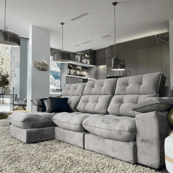 Estrutura em Madeira MaciçaAssentos e Encosto em fibra siliconizadaEncosto reclinávelOpção com Chase LongOpção Sofá de canto